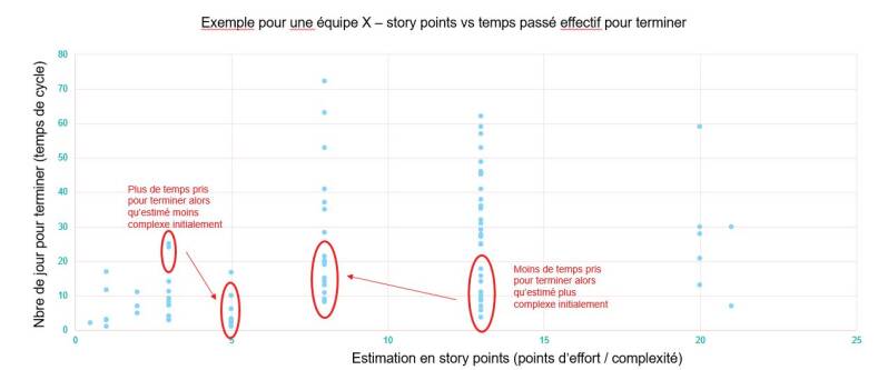 Donc est-ce que cela fait sens de réaliser des projections sur des dates, sur la base de story points, qui ont une corrélation très faible avec la durée que ces éléments prennent en réalité pour être réalisés ?